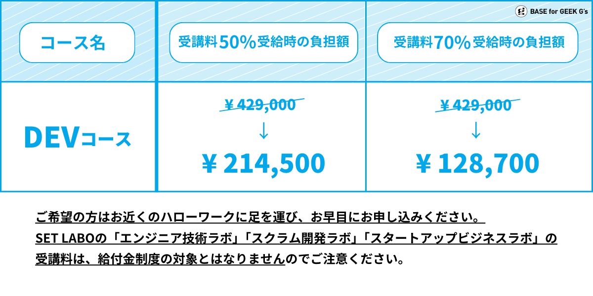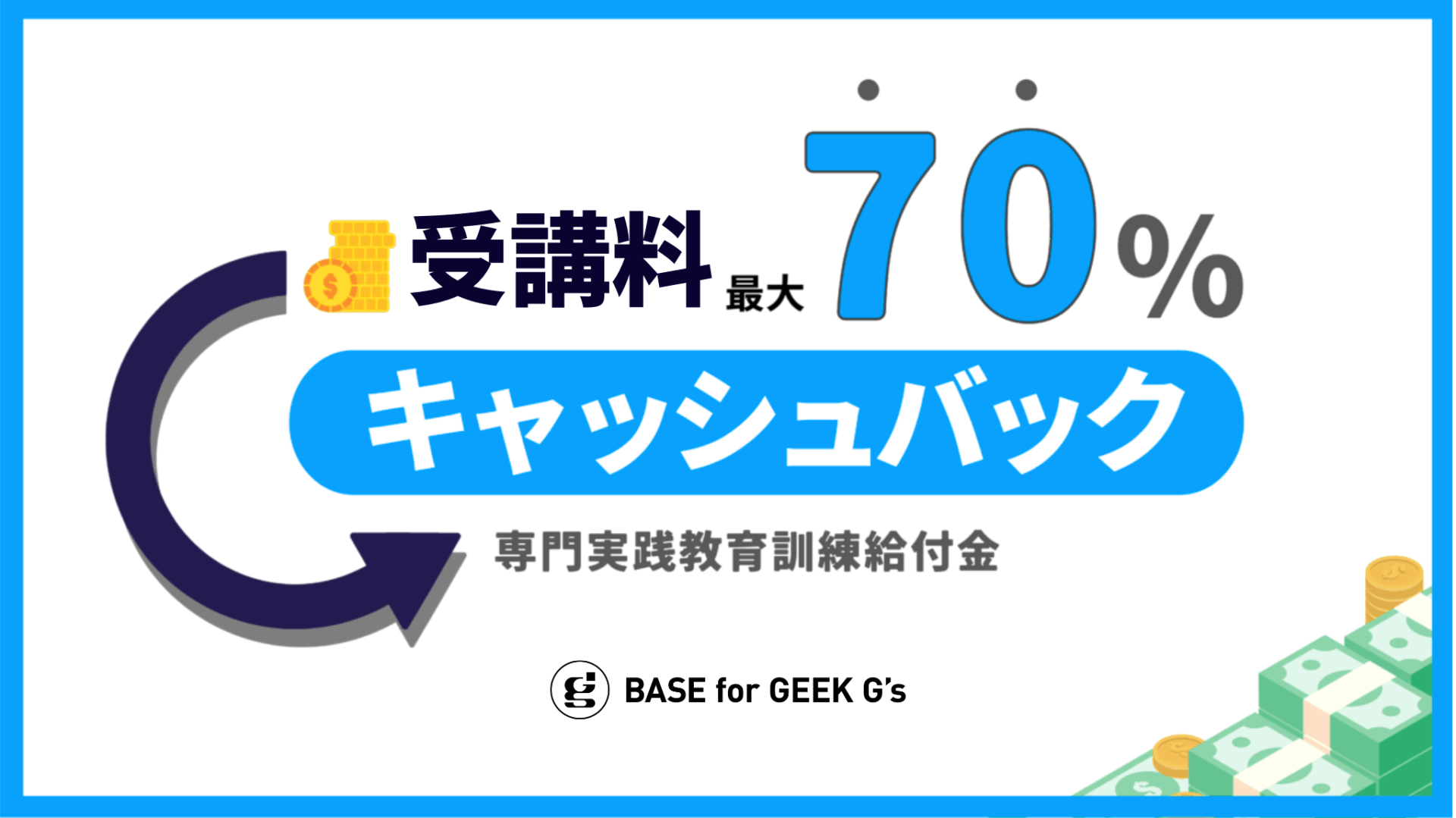 「専門実践教育訓練給付金」の受給対象となっているG’s DEVコースについて、詳しく知りたい方は、ぜひDEVコースのページをご覧ください。
